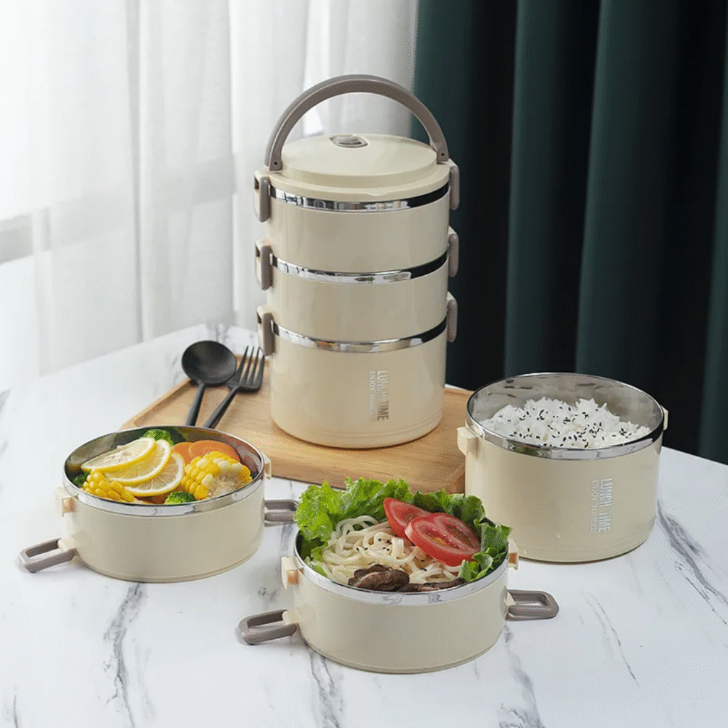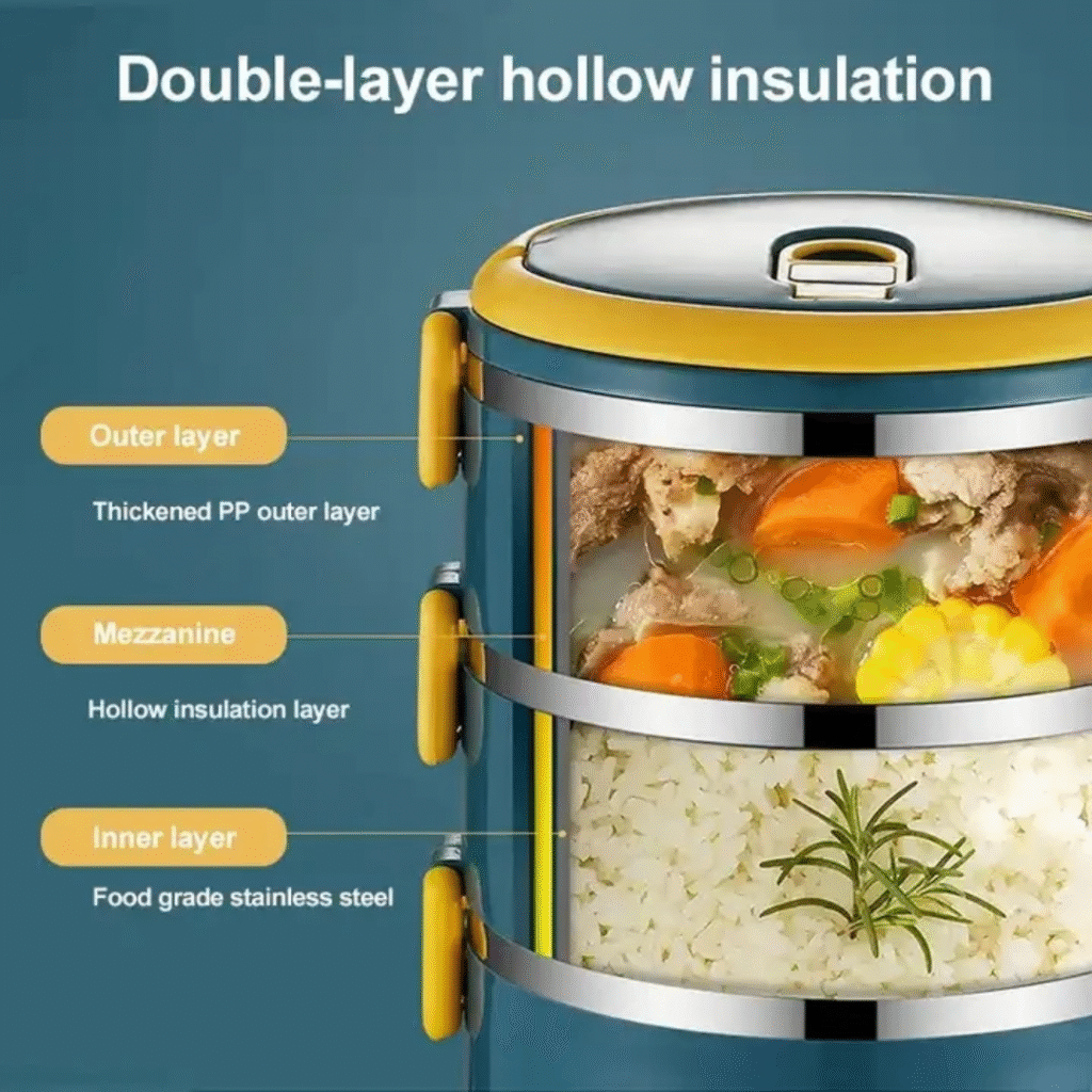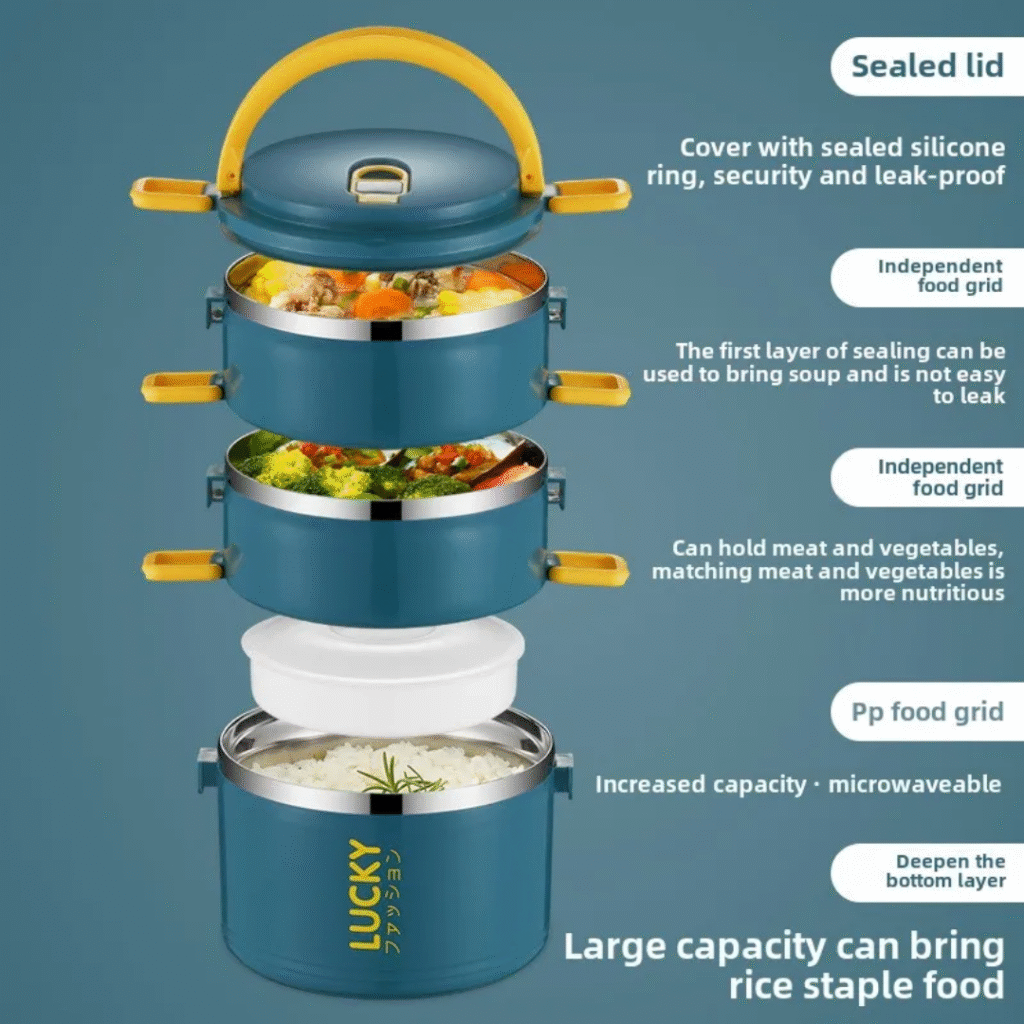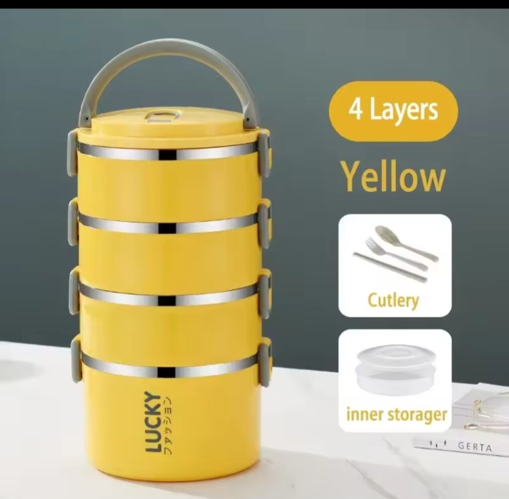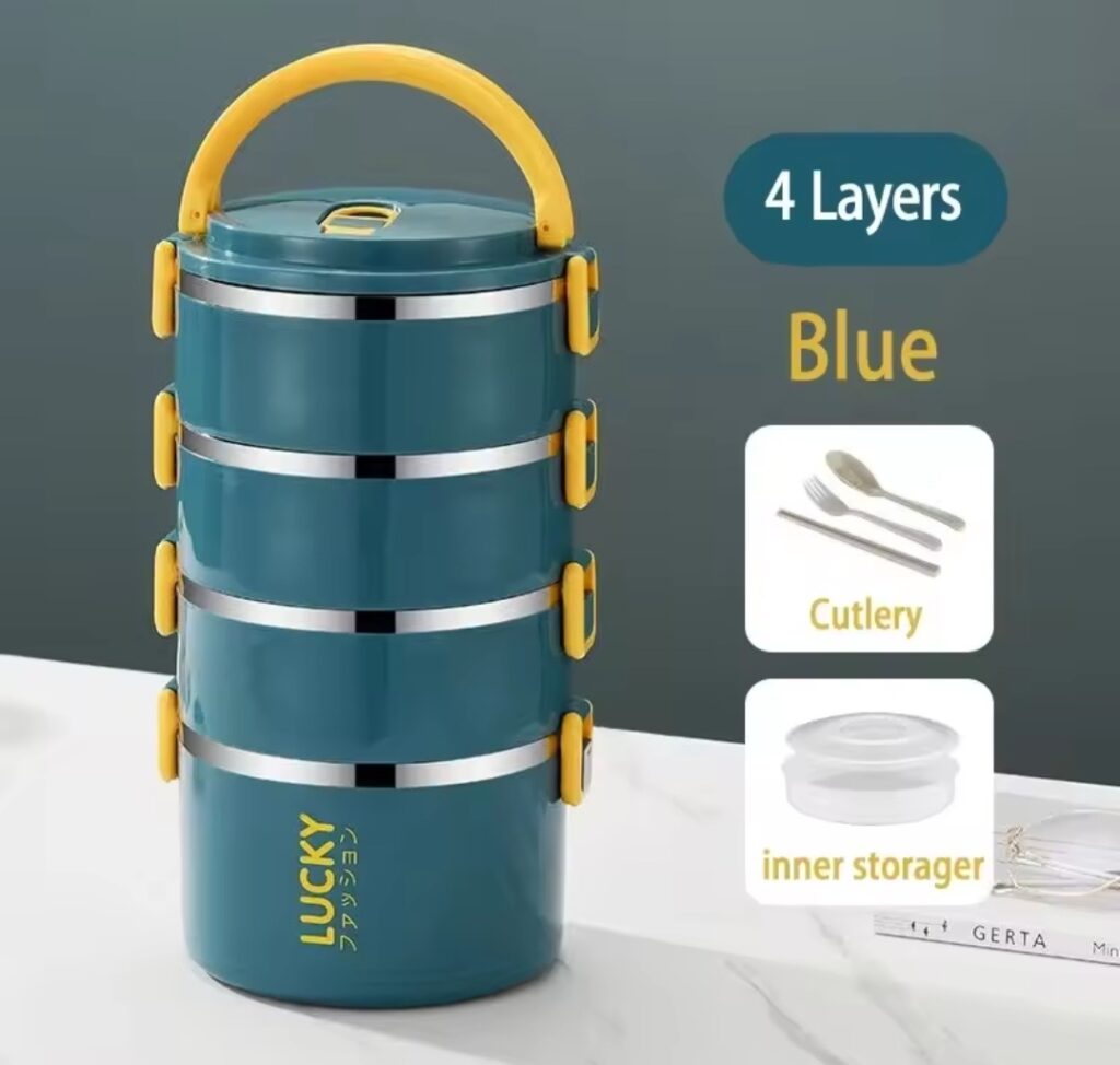 4 LAYERS SEALED INSULATED LUNCH BOX STAINLESS STELL WITH LID MEAL BOX MICROWAVE HEATING BAG